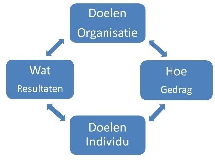 Het waarmaken van organisatiedoelen gaat verder dan het realiseren van de output en resultaten op korte termijn. Het gaat op de lange termijn ook om de manier waarop dit gebeurt: vanuit een collegiale houding, aansluitend bij de behoeften van de klant, een efficiënte aanpak, etc. Hierbij draait het om de persoonlijke ontwikkeling van de medewerkers, om het nieuwe graag dat ze laten zien.